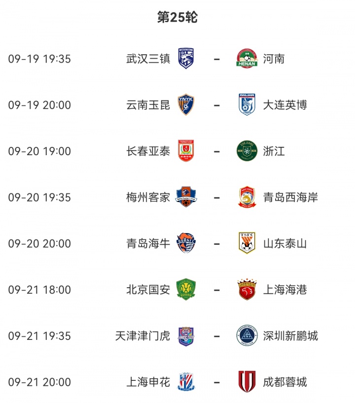 下轮国安vs海港,申花vs蓉城!